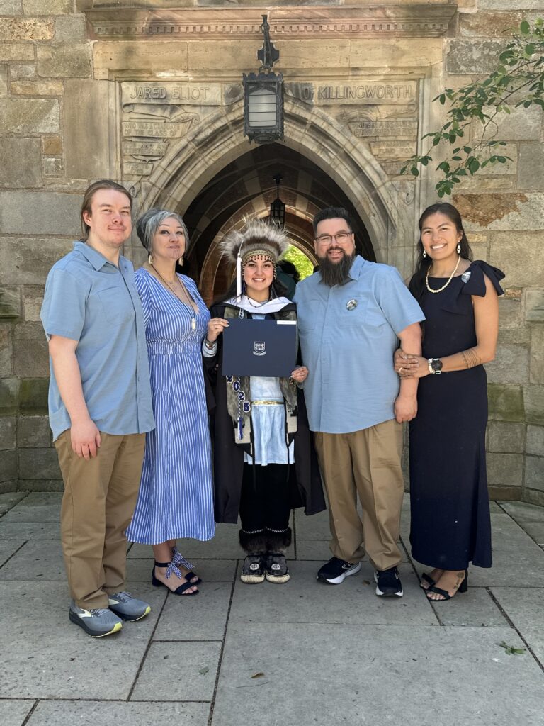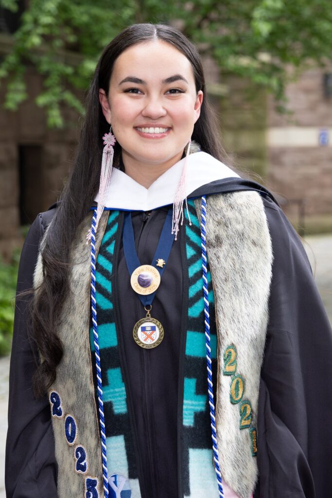 We are proud to share the news of Sitnasuak Descendant Nyché Skavaq Sivulliuqti Tyme Andrew, Yup’ik and Inupiaq, daughter of Jacqueline Walluk and Tigran A. Andrew, who graduated in May 2025 from Yale University with a Bachelor’s and Master’s in Political Science, along with a certification in Education Studies.